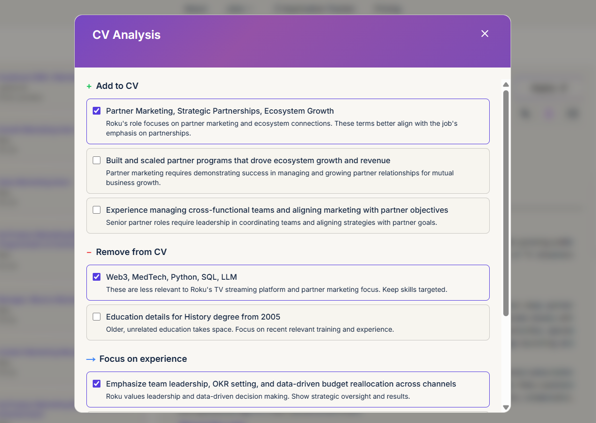 Одно резюме под все вакансии — главная причина отказов. Hire.Monster адаптирует ваше резюме под каждую вакансию одним кликом: не выдумывая лишнего, упаковывает ваш опыт, подставляет нужные формулировки, ключевые слова и структуру под требования работодателя и ATS-систем. Вы получаете готовый вариант под конкретную позицию без ручного копирования и правок.