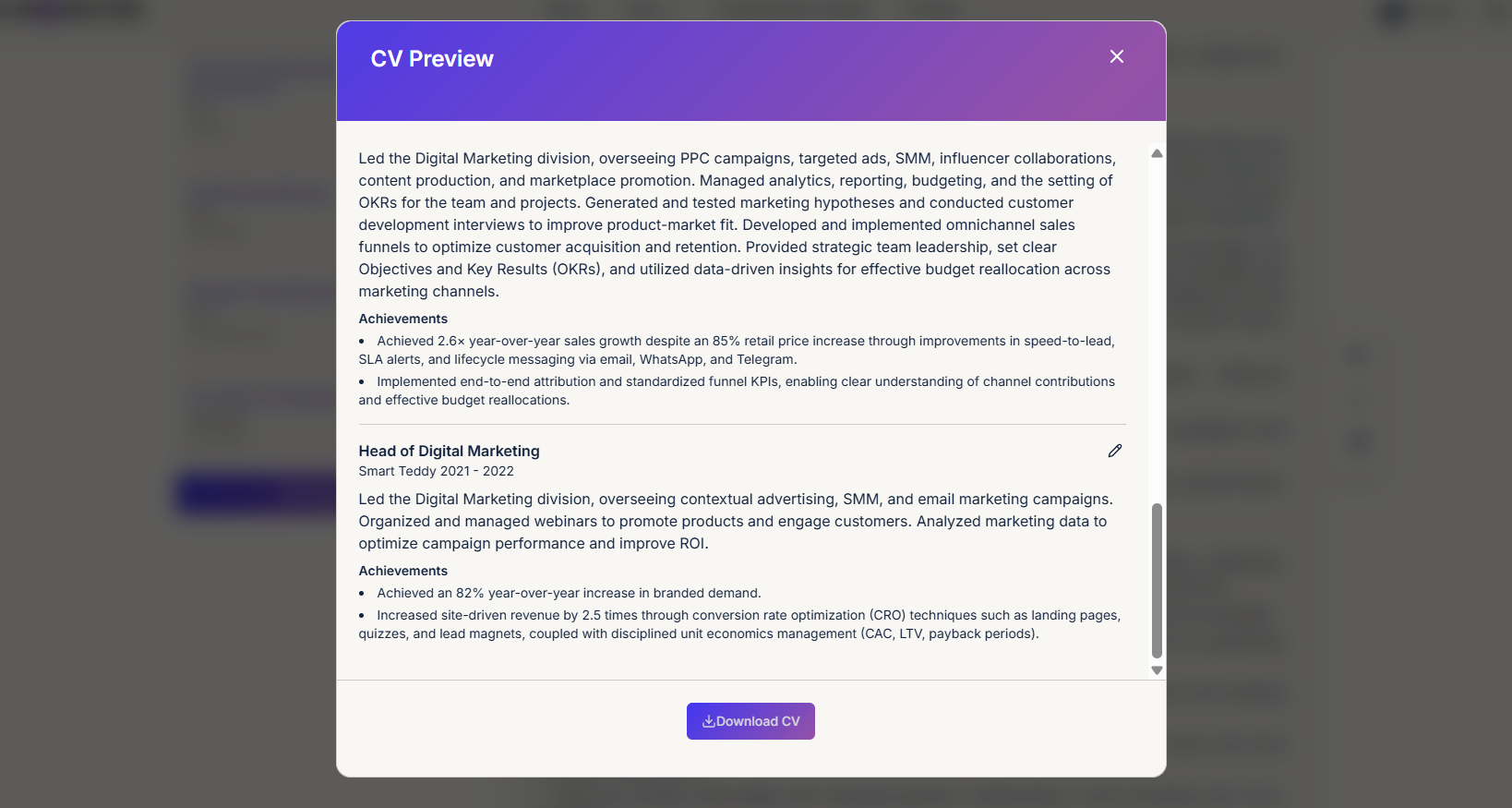 Превью адаптированного резюме